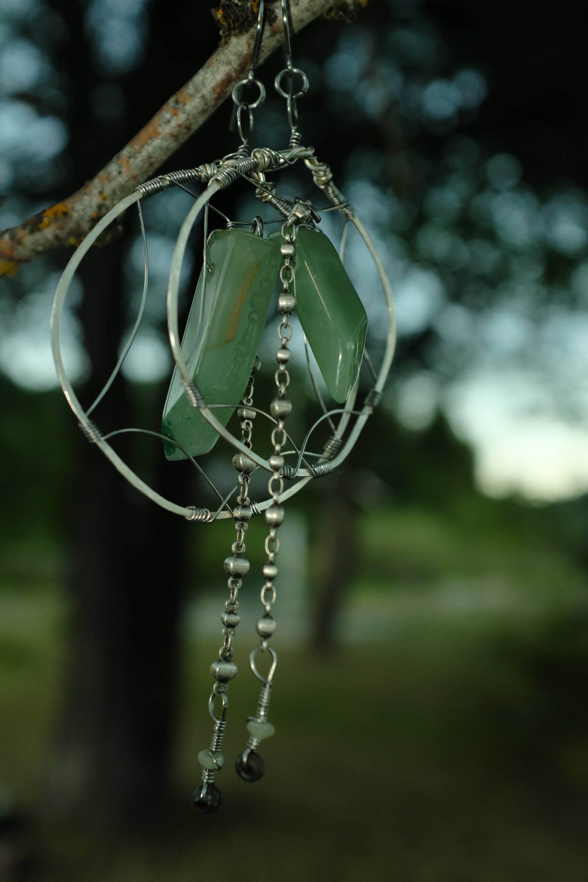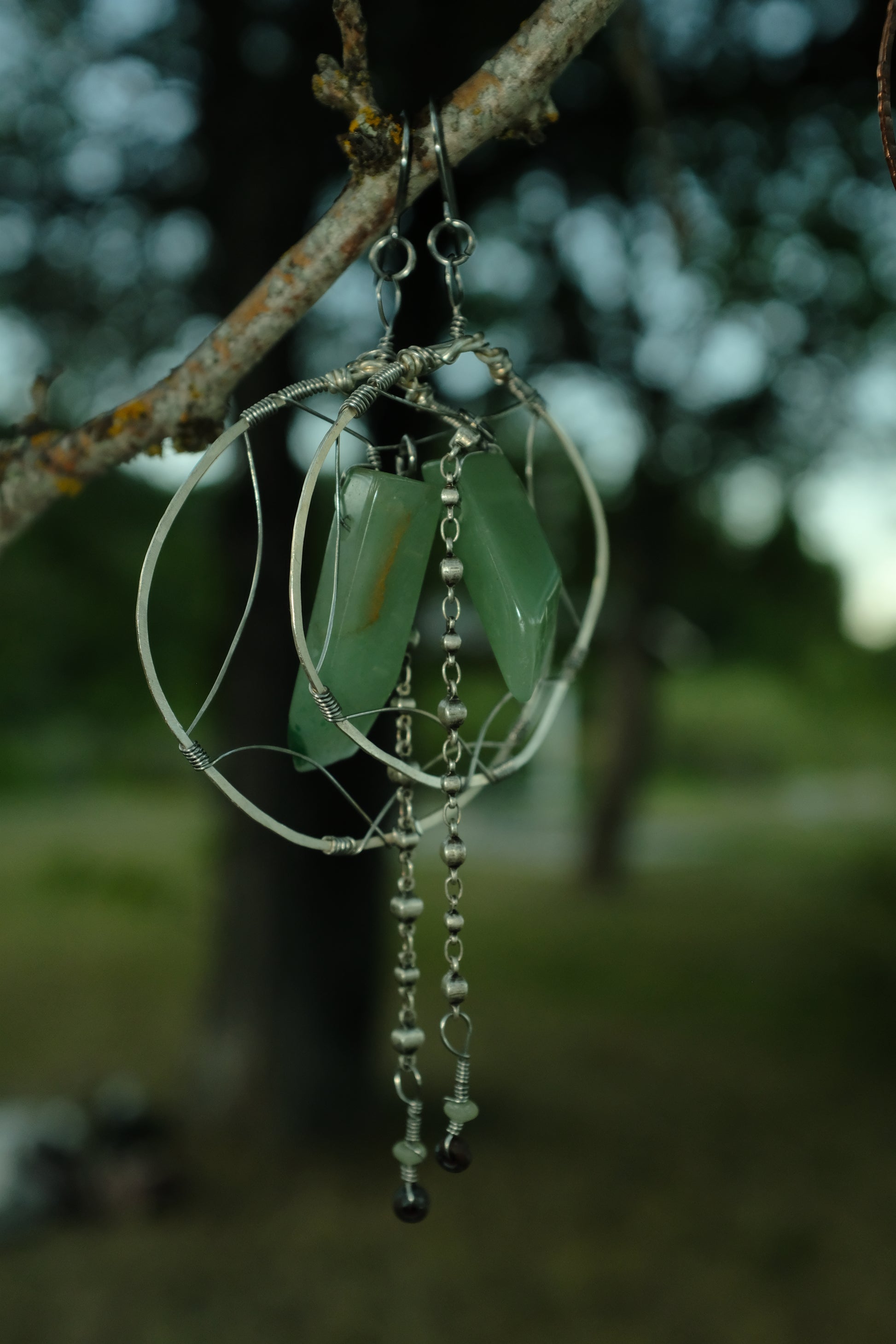 Aventurine Arc ~ wire wrapped aluminum hoops • silver dangles